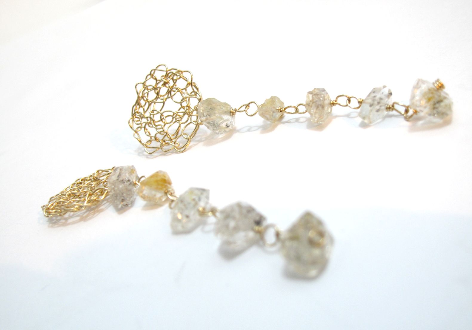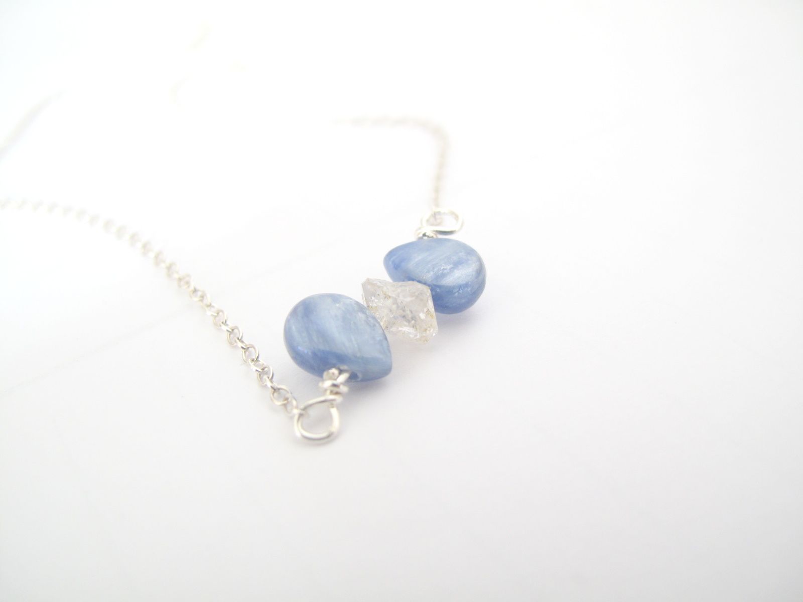(Smooth Kyanite briolettes embrance natural Herkimer diamonds)