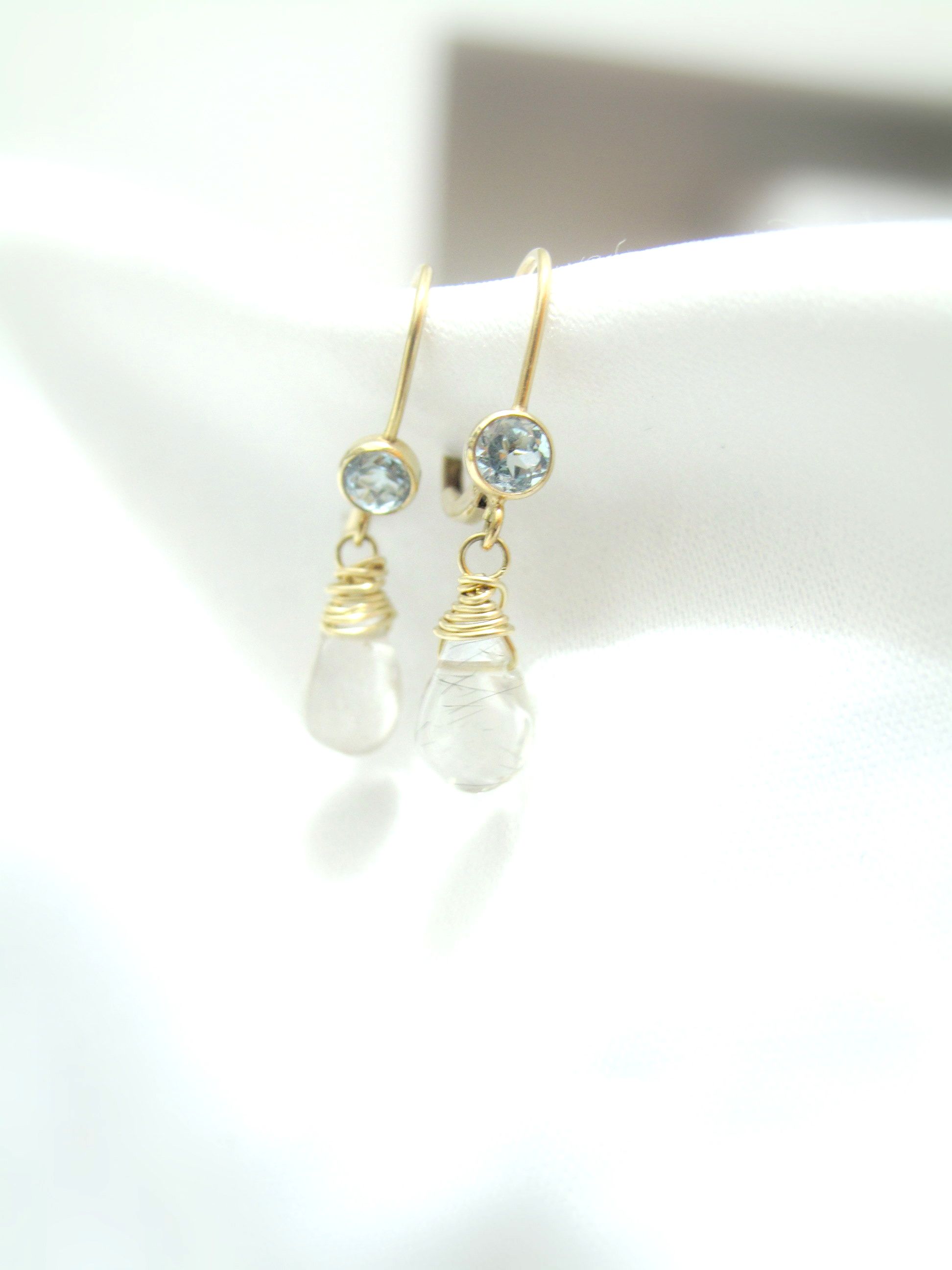 Light Blue Topaz and golden rutile quartz earrings