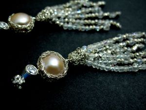 For the tassels I used beautiful Israelicut white topaz from India, silver pyrite also from India and Swarovski crystals.  I also made a nice bead cap.  All other components are sterling silver.