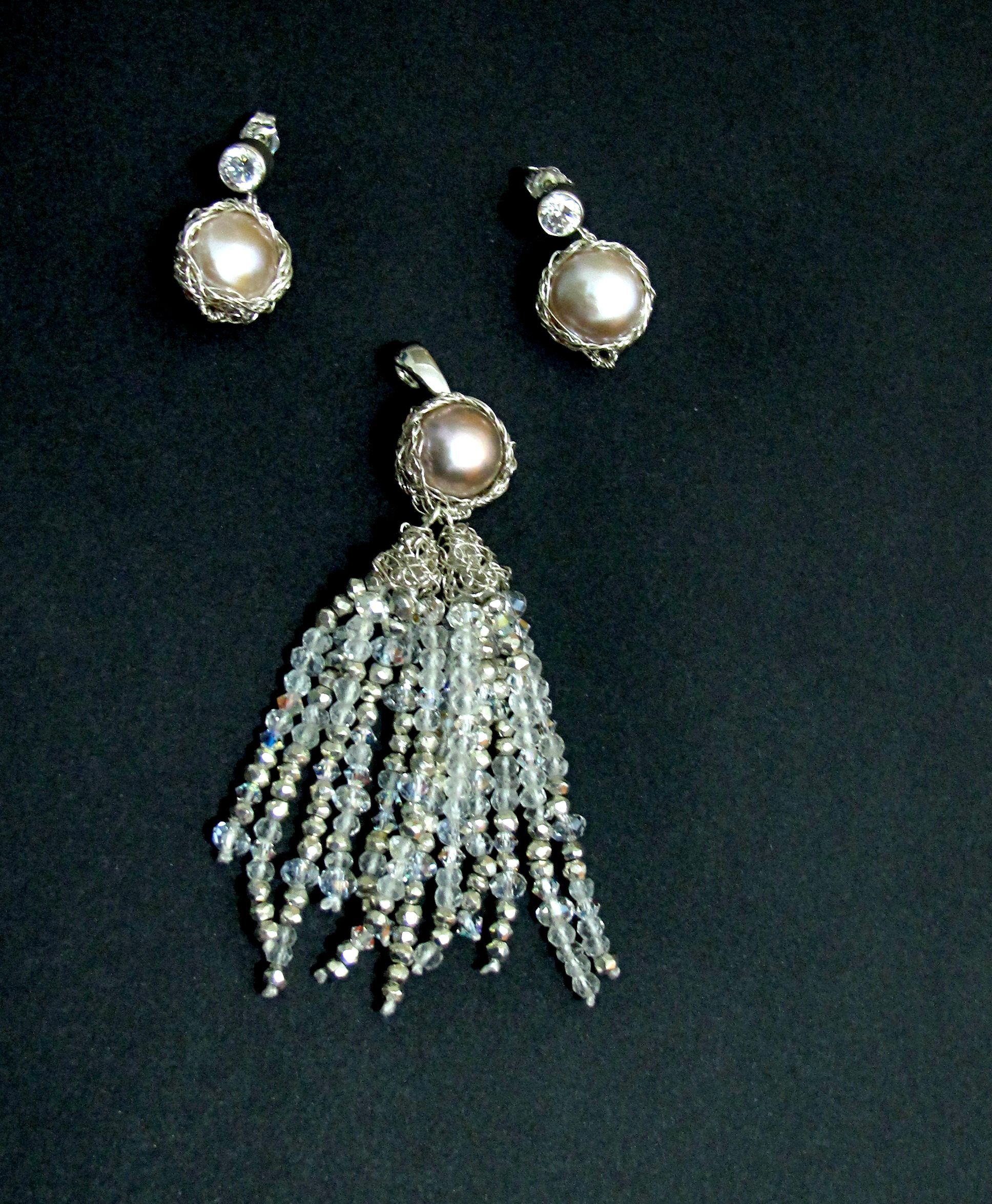 The request: re-work the  client’s freshwater pearl earring and pendant.  Use sterling silver.