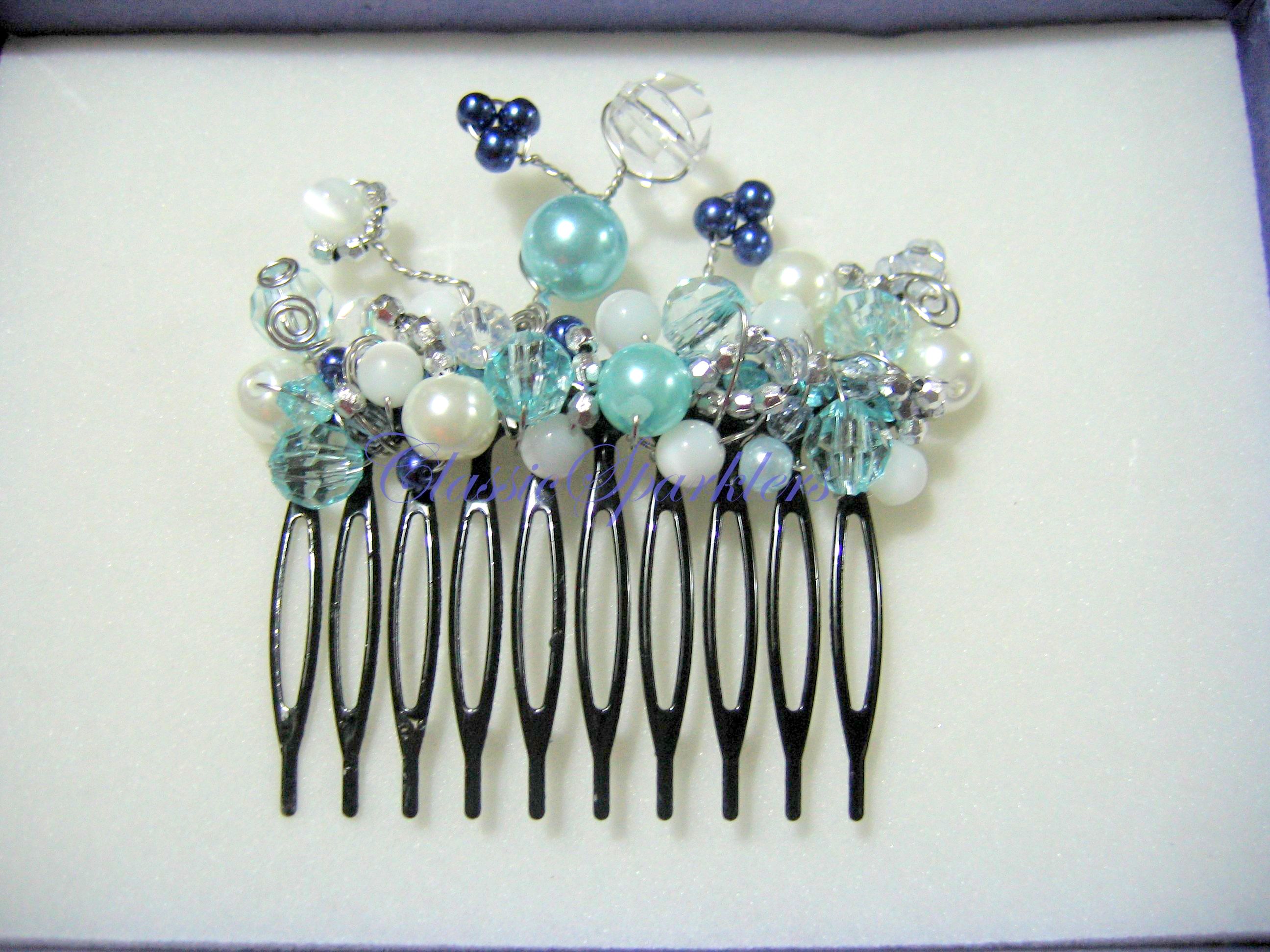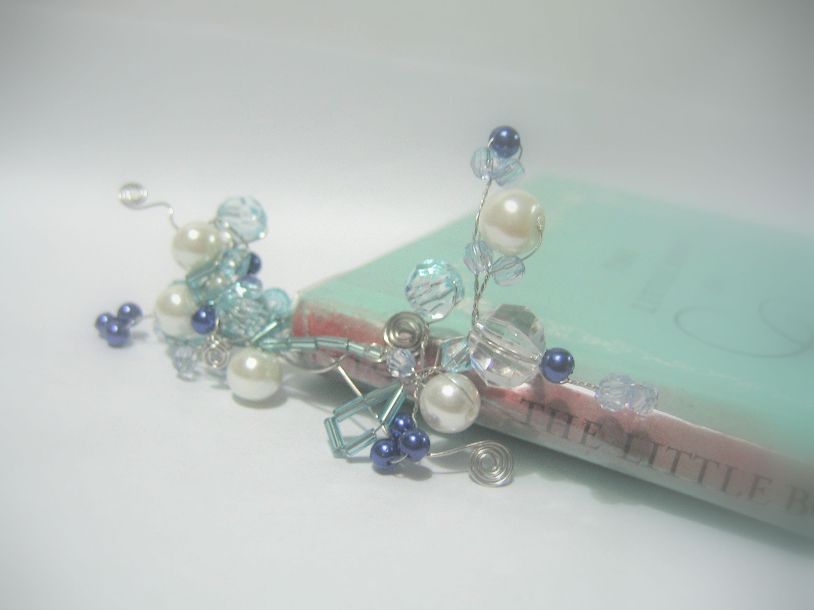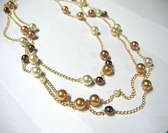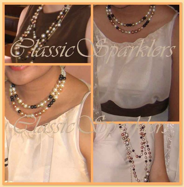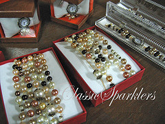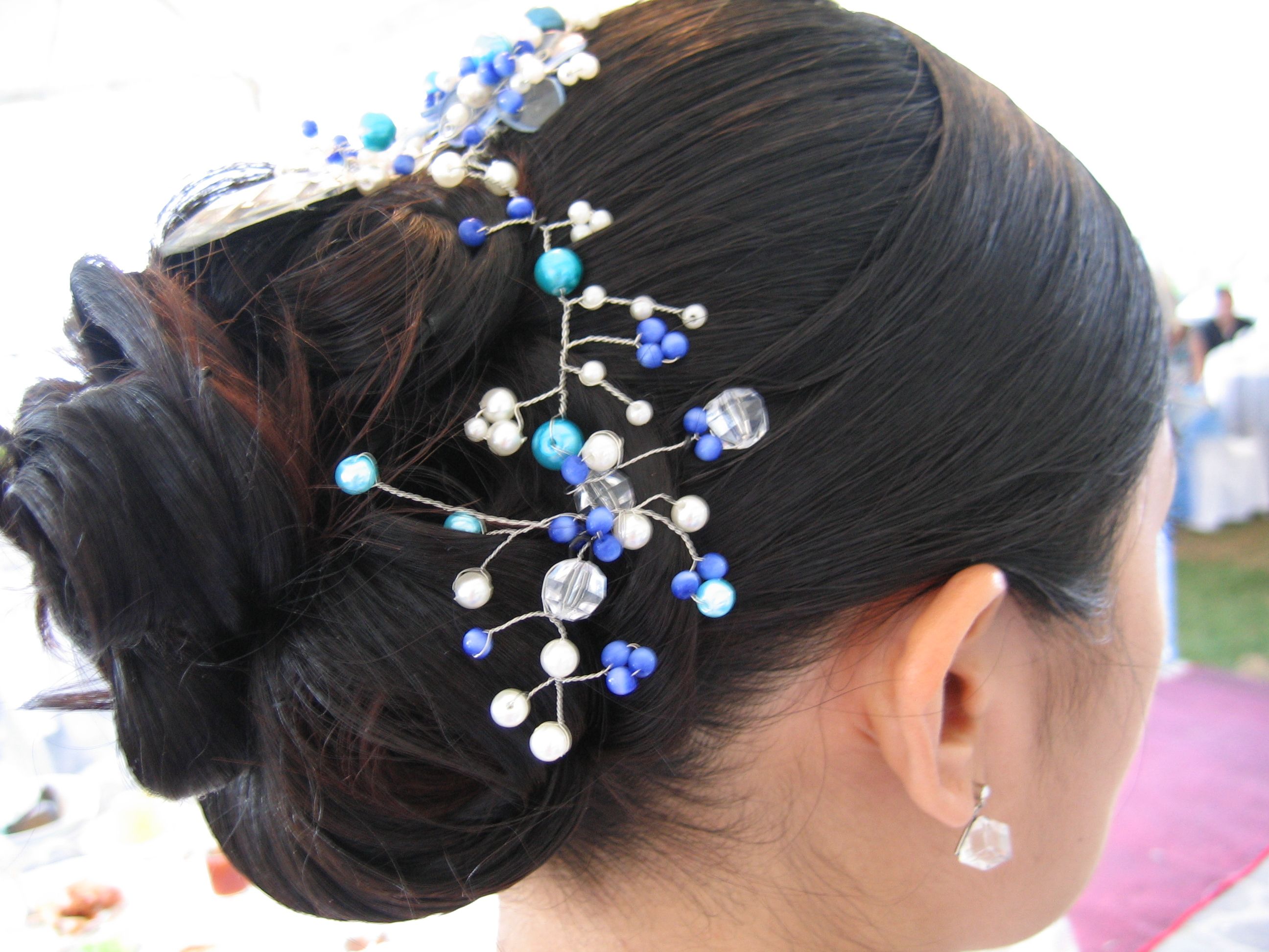 For her wedding coordinators, she asked me to create something in their favorite colors. I decided on a necklace. One was a detachable triple strand necklace, the other was a detachable double strand. Again, I can’t find the photos.
