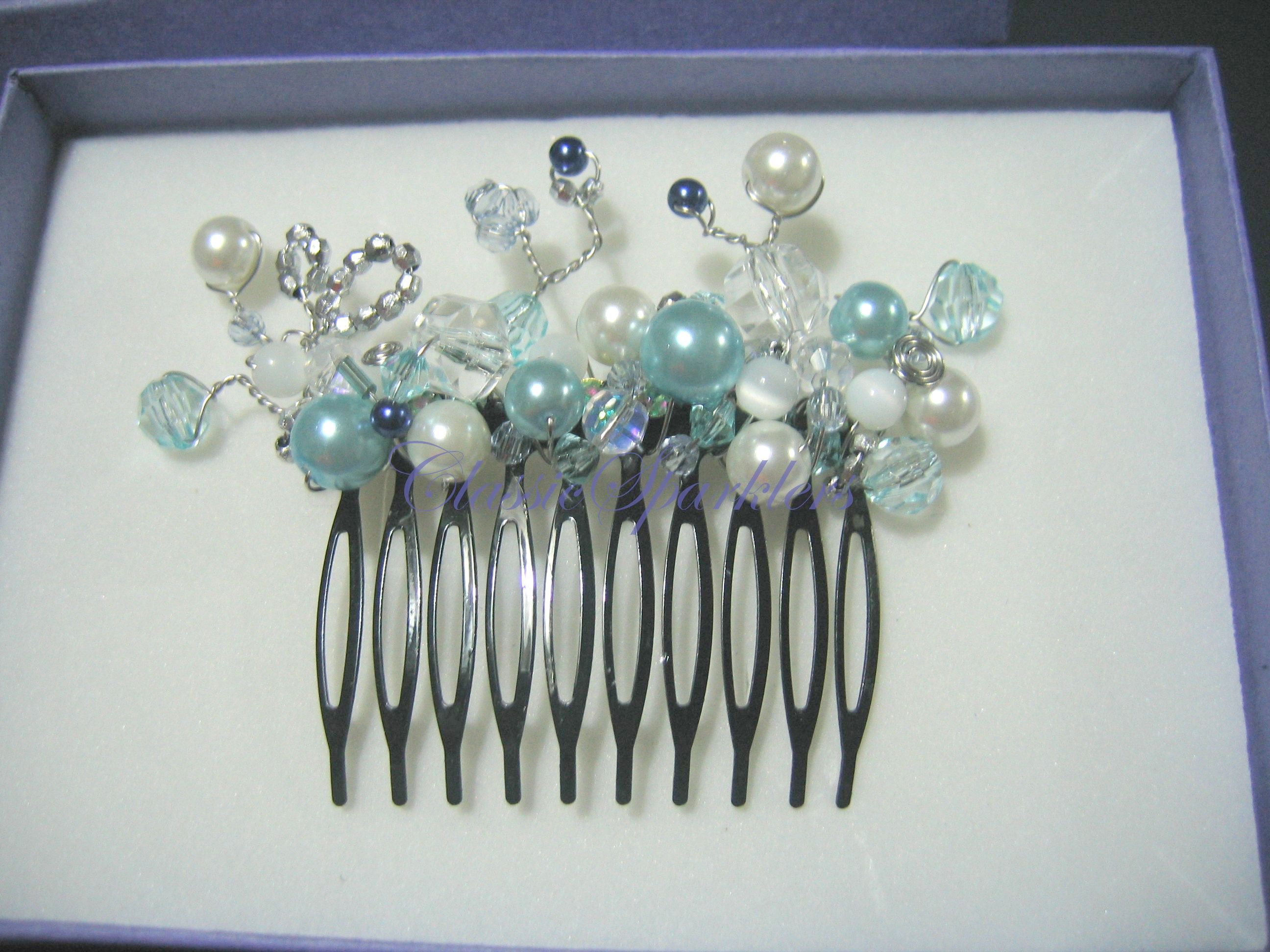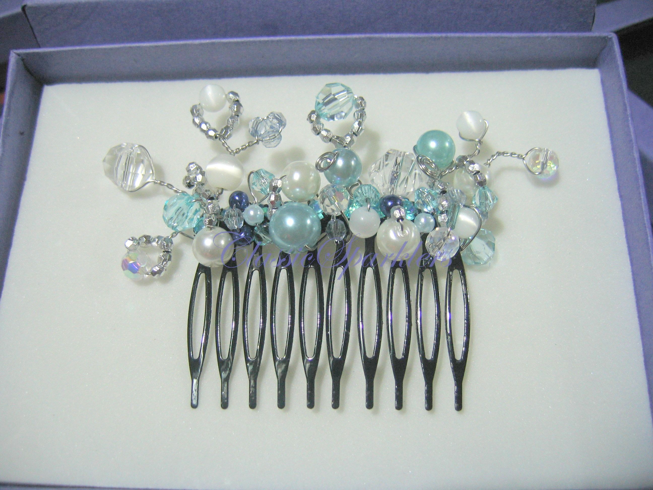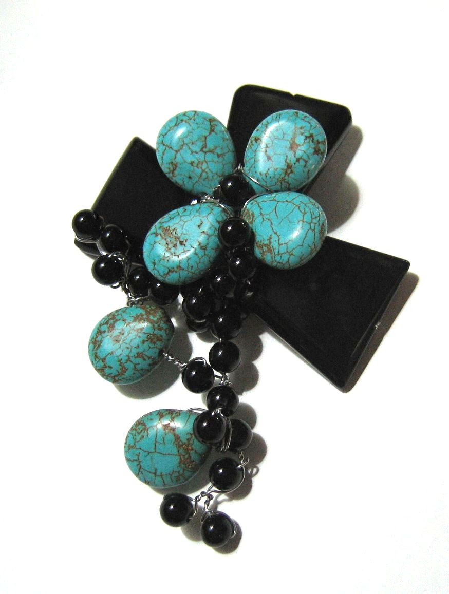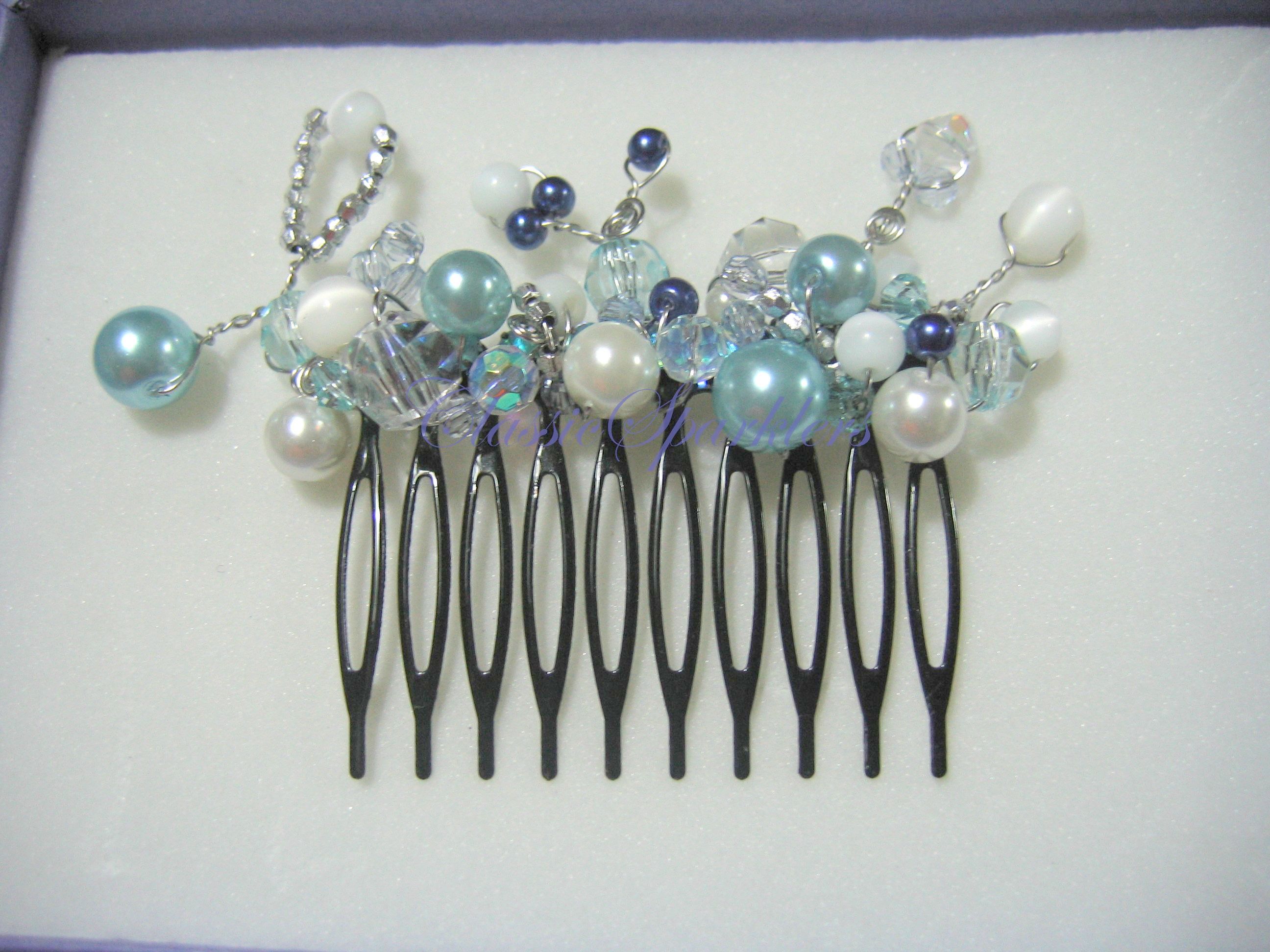 For her wedding coordinators, she asked me to create something in their favorite colors. I decided on a necklace. One was a detachable triple strand necklace, the other was a detachable double strand. Again, I can’t find the photos.